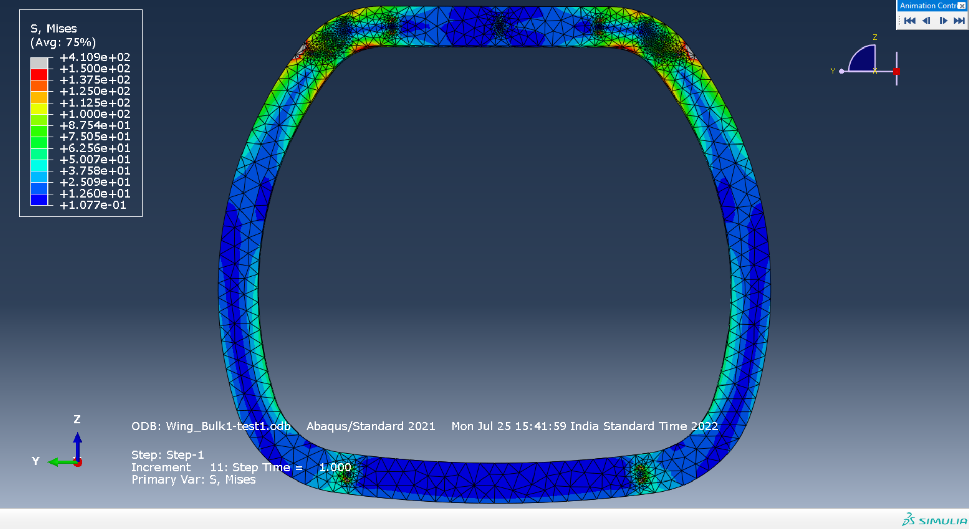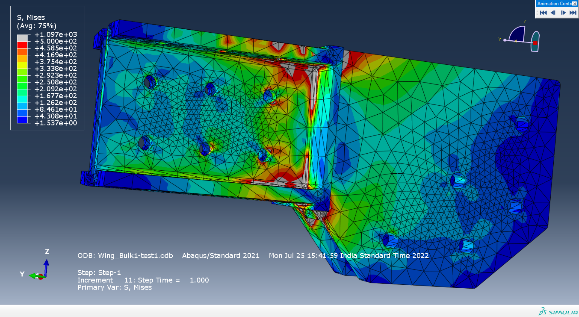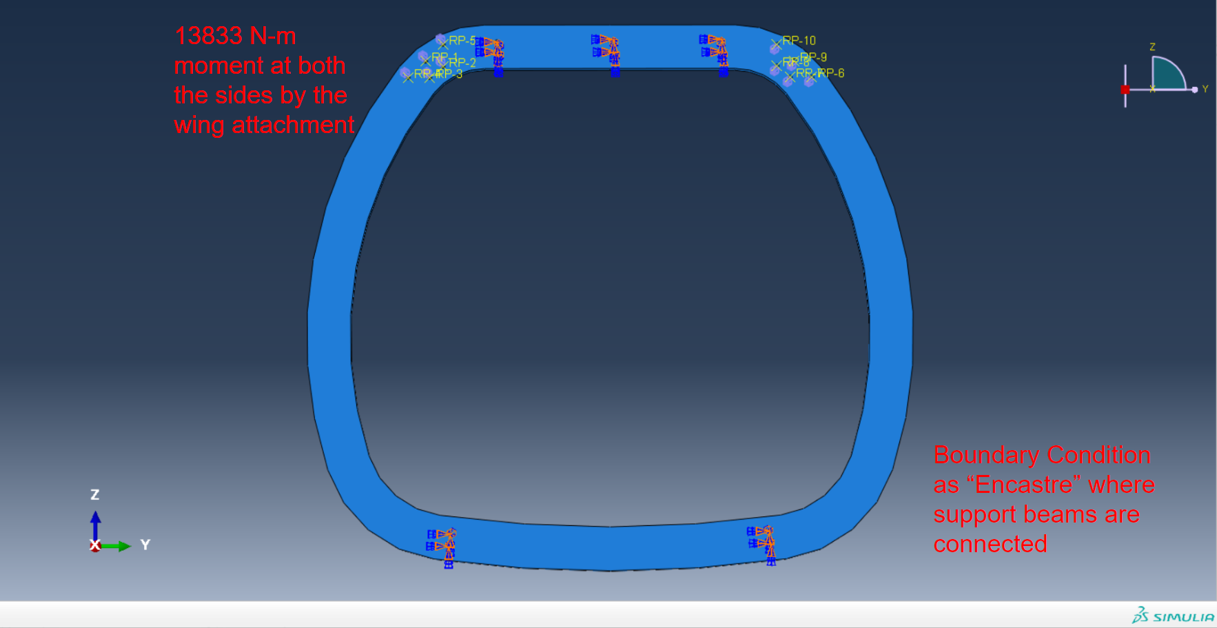 - Emulating real-world conditions by attaching the bulkhead to the wing using bolts and applying Eacastre boundary conditions to the supporting bolt holes.