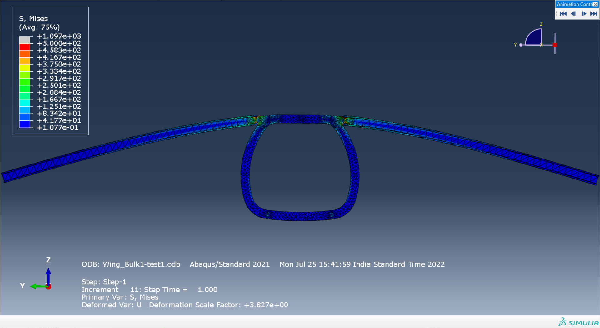 - Directly attaching the bulkhead to the wing via surface contact and applying Eacastre boundary conditions to the support bolt holes.