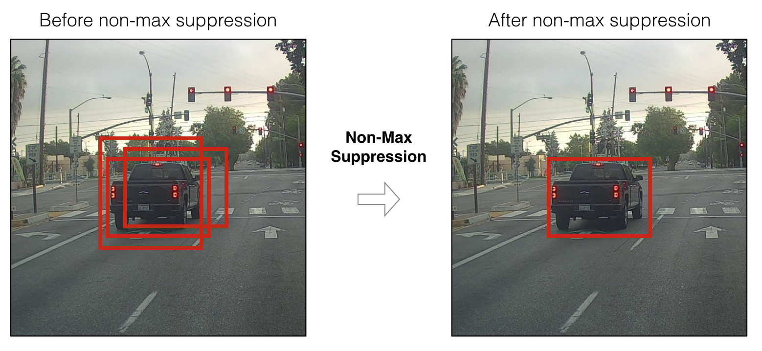 - Select only one box when several boxes overlap with each other and detect the same object.